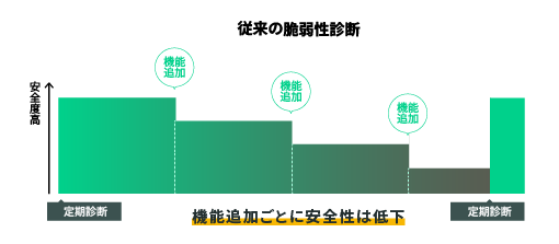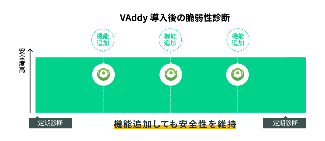 定期的な診断はもちろんのこと、機能追加等のリリースサイクルにあわせ診断を実施することで継続的に安全性を維持することができます。